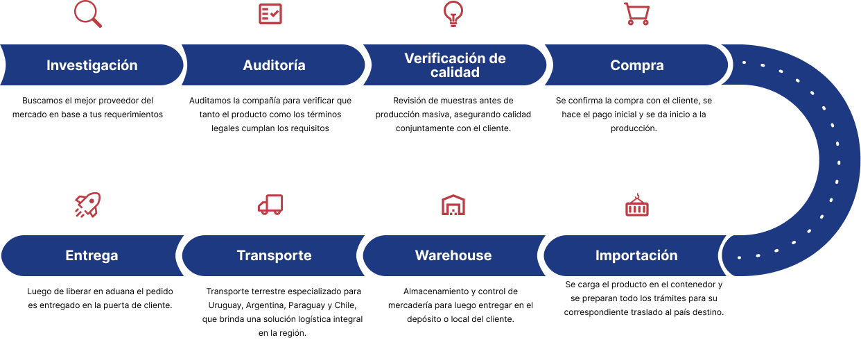 La gestión de toda la operación nos permite optimizar y asegurar un servicio completo y de alta calidad. Nos encargamos de auditar la fábrica, realizar la compra, transportar y entregar al cliente.